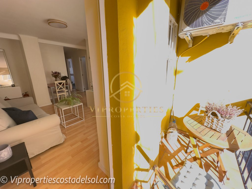 – Un salón amplio y acogedor, con aire acondicionado por split y salida a una terraza con magnífica orientación y luz natural durante todo el día.