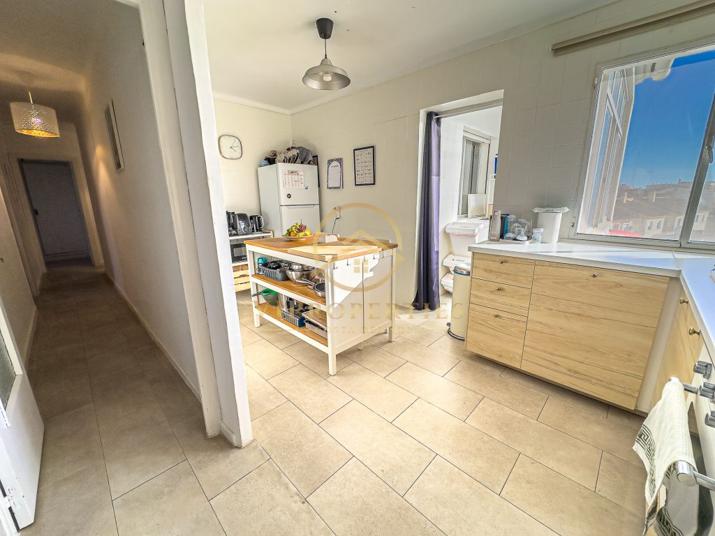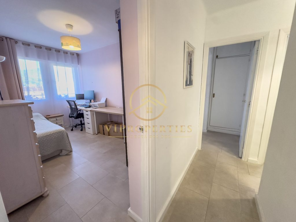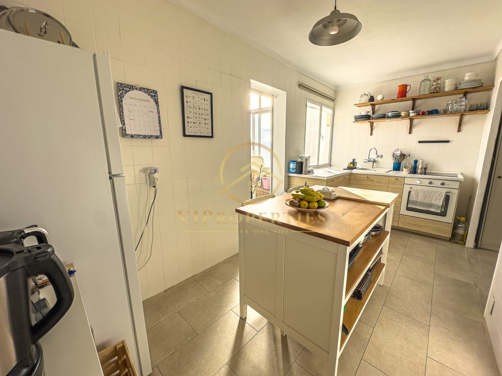 Con una superficie construida de 125 m², la vivienda se distribuye de la siguiente manera: hall de entrada que da paso a un pasillo distribuidor, tres dormitorios, dos baños completos recientemente reformados con lavabos e inodoros nuevos, salón-comedor muy espacioso con acceso directo a una terraza y una cocina independiente totalmente equipada y parcialmente reformada, con una nueva isla comedor, lavavajillas y acceso a lavadero.